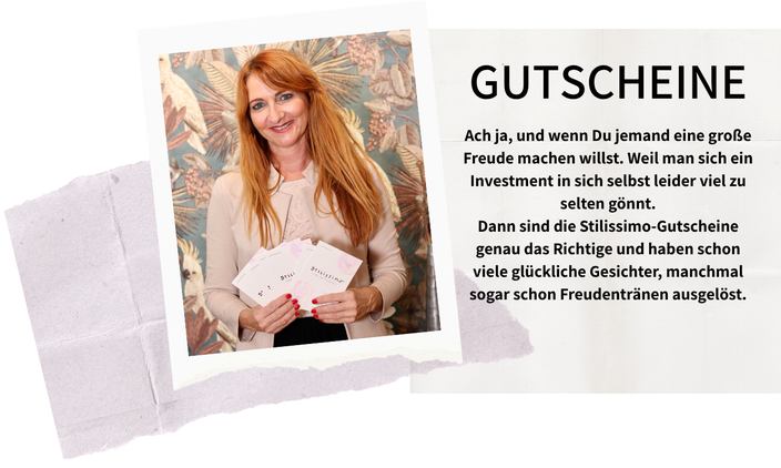 Manchmal braucht es nur einen liebevollen Blick von außen, um sich selbst wieder mit neuen Augen zu sehen. Ich zeige Dir, wie Du mit den richtigen Farben strahlst, mit Deinem Stil in Einklang kommst und Deine Garderobe endlich nur noch aus kombinierbaren Lieblingsteilen besteht.